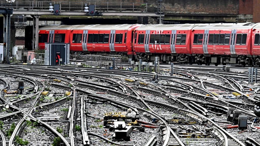 In the meantime, here’s today’s picture which was taken in London last Saturday in similar conditions. Rain can be a real aid to photography because of the lighting conditions. Here’s a shot I took of the trackwork at London’s Victoria station where images are almost monochrome well, if it wasn’t for the train in the background, but I think that adds to the effect.