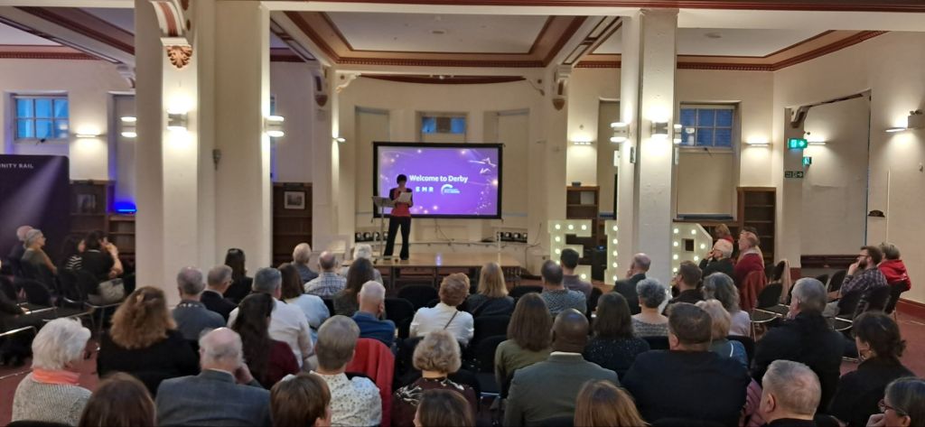 Myself and the rest of the Community Rail Network team and our hosts from East Midlands Railway are currently working like Trojans, getting the stage (and bar, and lounge, and everything else) set for tonight’s annual Community Rail Awards. We’ve a record attendance this year – over 600 people, so this is the biggest venue we’ve used in the 21 years of the event. We change location every year, so each time we’re faced with different logistical and technical challenges which makes for an ‘interesting’ time! I’m not going to give any spoilers other than to say there’s going to be a fantastic event some very worthy winners. Here’s the brochure.