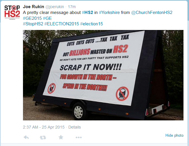 – comes to you from one of the tiny number of anti Hs2 groups on the phase 2 route, or in the North. Although, they do seem rather confused over where the North actually is.