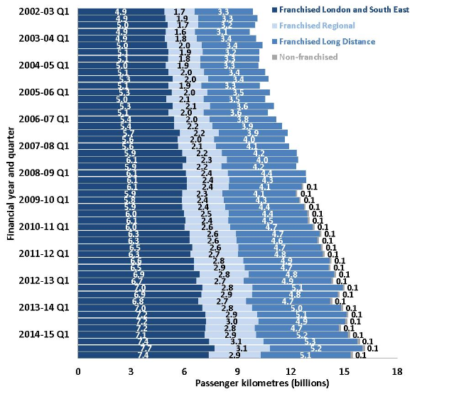 You point out that the figures show an increasing demand for rail travel across the board. Or in other words, that more and more people are wanting to go from everywhere to everywhere else.