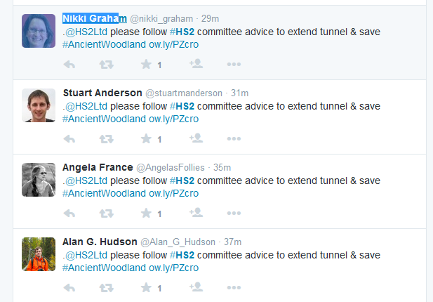 In another of life’s delicious ironies the Woodland Trust have intentionality exposed how little real support the anti Hs2 mob have. How? By launching this Twitter campaign.