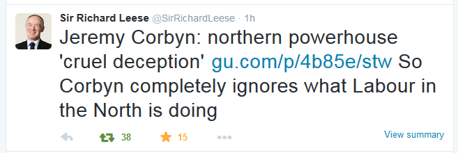 UPDATE: It wasn’t long before a response came from the North care of Manchester’s leader, Sir Richard Leese, who tweeted this riposte;