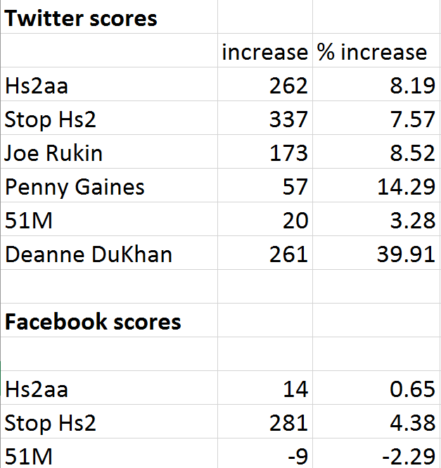 Away from social media the news is even worse. Bucks County Council leader Martin Tett has effectively admitted the 51M campaign is dead and buried. With the earlier demise of AGAHST this leaves just StopHs2 and Hs2aa and neither of them are getting anywhere. One can only speculate how long their campaign can survive like this.