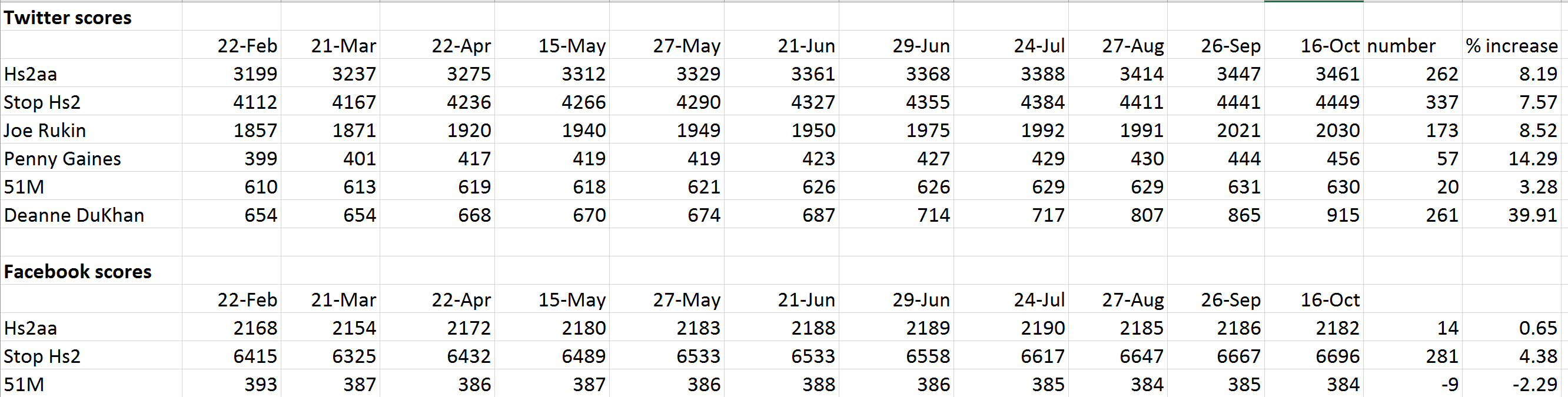 There’s a wonderful irony in the fact that the most successful, Deanne Dukhan has pretty much abandoned tweeting about Hs2 & moved on to other things. This isn’t much of a surprise. Deanne was Campaign Director of the woefully inept AGAHST (Action Groups Against HS2) which ceased to exist. You can find their abandoned website here. I’m still keeping her in to provide a useful contrast.