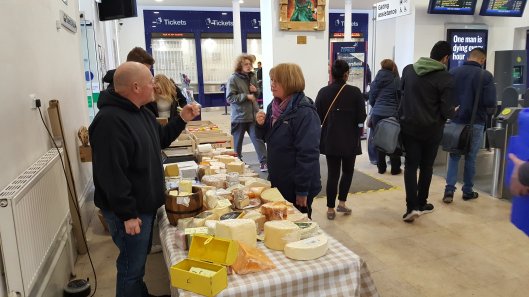 Whilst I was on my travels I popped into the station and found a cheese shop had set up store in readiness for the flood of homeward bound commuters. I normally visit on a Wednesday to purchase some of the artisan bread for sale, but I was sorely tempted to sample some of today’s wares. I have to be careful as my wife can’t eat cheese, so for me it’s a rare treat.