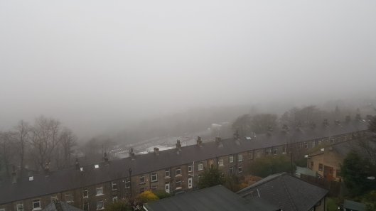 It’s grim up North…Underneath that murk is Sowerby Bridge and the other side of the valley, but this is how it’s been for most of the day. Oh, now that spring is here…