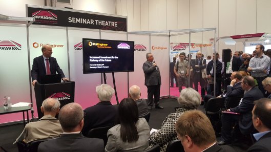 No time for blogging earlier, it’s been a busy day at Infrarail shooting pics of the speakers, networking and catching up with old friends. Here’s Transport Minister Chris Grayling taking questions after his keynote speech.