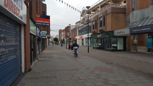 Not exactly buzzing, is it? Worthing suffers the same malaise that many small towns do, the main street is nothing but shops it’s not mixed-use. So once the shops close it’s deserted. The other thing I noticed was the lack of pubs and bars. I only saw one ‘proper’ pub (which didn’t look very inviting) and a shop converted into a bar. I’ve never known anything quite like it. Even the promenade is free of pubs or cafe’s. The only one is in my hotel – and half of that’s sheeted off because they’ve got the decorators in (in June?).