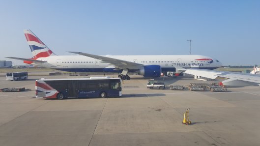 After being bussed around what seemed the entire perimeter of Heathrow i’m now occupying seat 27A on BA936.