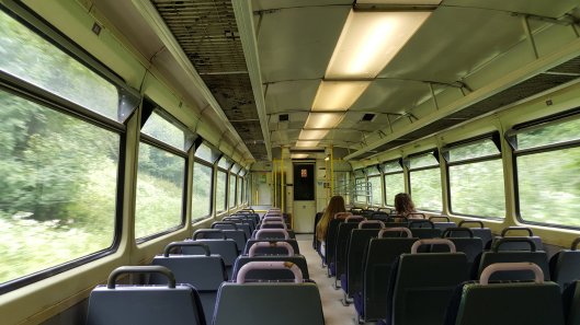 Our first train of the day is a refurbished Scotrail Class 158 fitted with high-backed seats and plug/USB sockets.
