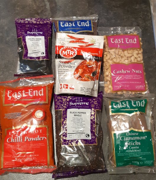 Despite the filthy weather and treacherous conditions we’ve ventured out as we needed to stock up on spices ready for Xmas. I love browsing the local Asian supermarkets, marvelling at the variety of exotic veg on offer, or exploring the vast spice aisles. Here’s our haul.