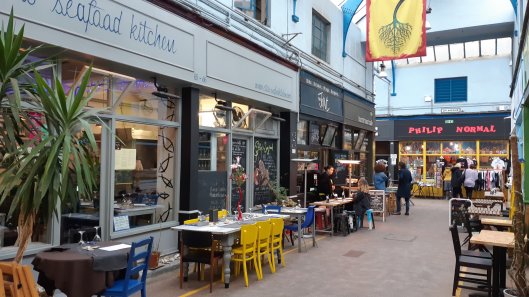 I’m heading Northwards again now after a busy day. It was lovely being back in Brixton again. Living in the Pennines is lovely because of the scenery, but I do miss the hustle and bustle of London and the sheer diversity of the place. After picking up two big bags of slides I had time for a mooch around the Brixton arcade which was very quiet as it was the end of the day. It’s gone upmarket. Now there’s lots of great looking little bars and cafes as we as all the butchers and fishmongers.