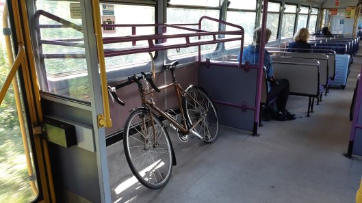 I’m currently bouncing my way to Huddersfield on a 2+3 Pacer lash-up of a 144 and 142. Say what you like about Pacers, but there’s plenty of cycle space in 142004!