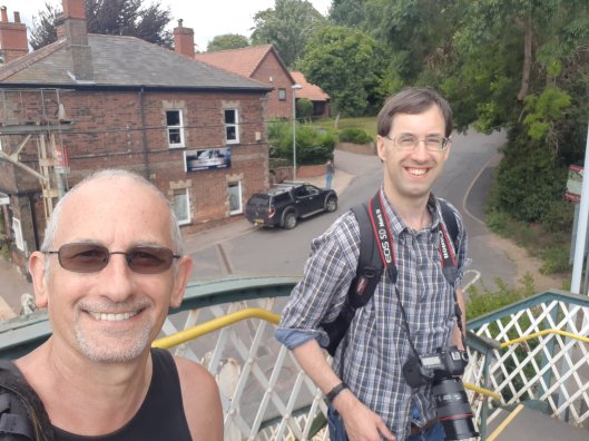 I ended up in Brundall, the junction for the lines to Great Yarmouth and Lowestoft. It’s another link to the past as it also has semaphore signals, a working signalbox and also a hand-operated level crossing. By fluke I bumped into an old friend. Rob Pritchard of Today’s Railways UK magazine was there changing trains. We’d both pitched up for the same reason – we needed pictures of the new Stadler trains in service. Unfortunately, today wasn’t the day as the one I’d shot at Cantley earlier had been taken out of service, so we had to make do with 60yr old Class 37s instead! Here’s the pair of us ready to get some shots.