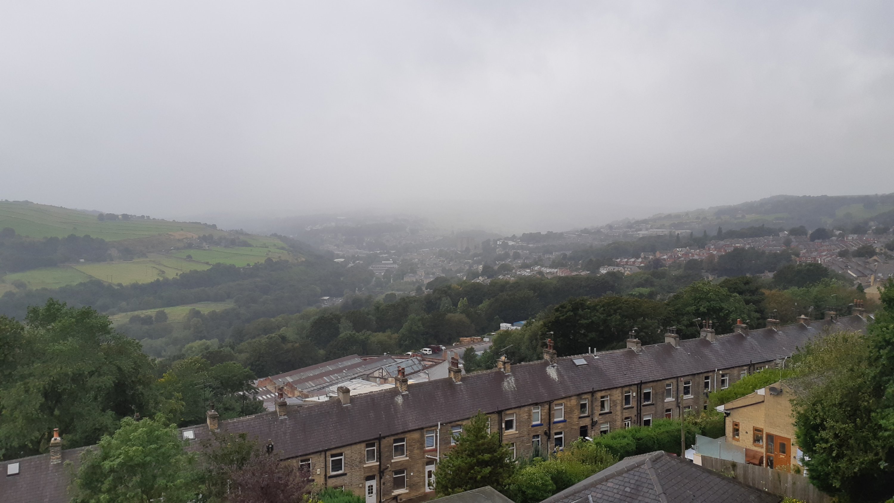 There’s not much blogging from me today as I’ve been spending another day cooped up at home for most of it, trying to get catch up on DIY, chores and paperwork. Add to this the fact the weather here’s been ‘mixed’ and there’s been little opportunity for photography. Here’s the view across the Calder Valley and Sowerby Bridge earlier when I wandered out to do some shopping. The latest rain shower’s sweeping up the valley from the West.