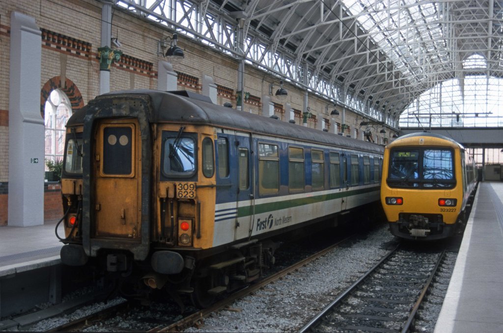 The weekend wasn’t all down time. I had to finish editing the pictures from the ACoRP awards ready for Monday morning, so the moggie did me a favour in some ways as I’d got them done by Saturday breakfast-time. On Sunday I started tackling another long-standing job – scanning the 1000s of old rail slides that I have to get them onto my Zenfolio website and available for sale. The album that’s in the queue now is pictures from 2000 when the railways looked very different. I scanned a small selection of pictures from the Manchester area, a few samples of which appear below. In those days Virgin trains were all still loco-hauled as the introduction of the Pendolinos and Voyagers were still a couple of years away. First group ran the North-Western franchise and used an assortment of old BR built trains, including first generation Class 101 DMUs built by Metropolitan-Cammell back in the late 1950s – early 1960s, along with old electric units cascaded from London and the South-East in the shape of ex-Eastern region slam-door Class 305s and 309s. Apart from the liveries, very little seemed to have changed then despite several years of privatisation, but change was certainly in the offing…