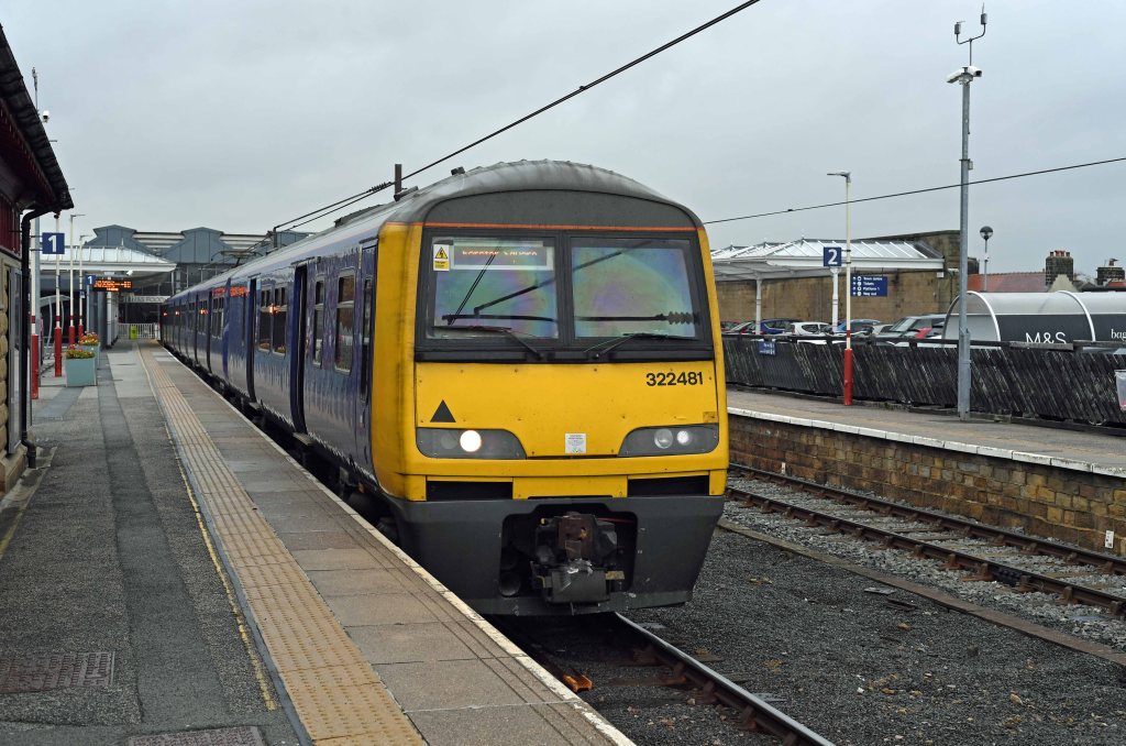 331110 calls at Baildon whilst working 2D64, the 1516 Bradford Forster Square to Ilkley.The 322s won’t be around for much longer but for now they’re hanging on. Here’s 322481 working 2D63, the 1451 Ilkley to Bradford Forster Square.Inside the leading vehicle of 322481, showing the rather dated moquette and 3+2 seating layout.There was a lot of late running on the Aire and Wharfdale services today. Here’s 322482 approaching Shipley. It was running empty as 5S40, the 1640 Bradford Forster Square toSkipton as was taken off the service it was diagrammed to work due to the driver turning up late. Here’s 5Z75, the 1636 Skipton Broughton Rd C.S. to Skipton driver training run seen at Bingley on the return trip. These diagrams run to Shipley before reversing. One of TPE’s new Nova 3 sets at Leeds this eveningJourney’s end. My Pacer’s a blur as it pulls out of Halifax on its way to Huddersfield