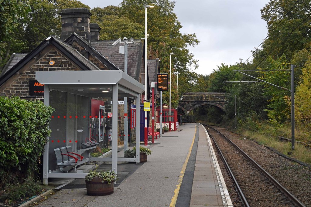 I’m heading to Leeds, honest! I’ve just got sidetracked as it were. After Ilkley I stopped off at Baildon, which is a station on the single track link from Guisley to Shipley. The original station building still survives, although it’s been vacated by the tyre company that had been using it. Despite that, the stations environs are kept looking smart by the local station friends group. I’d not been here since 2010 and there were a couple of photo opportunities (despite the weather) so I decided to stop off.