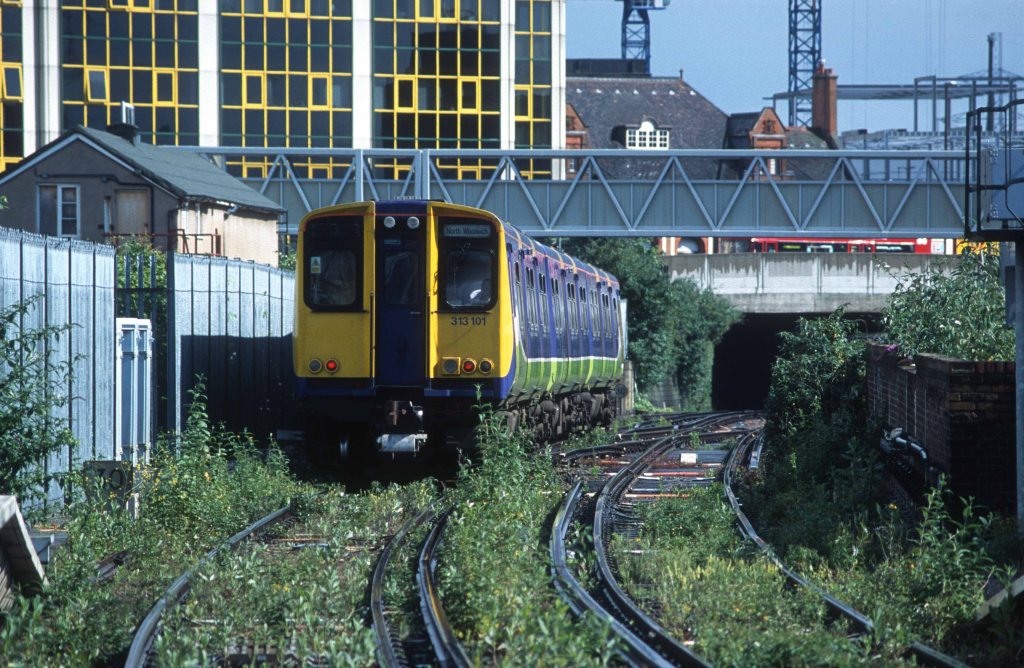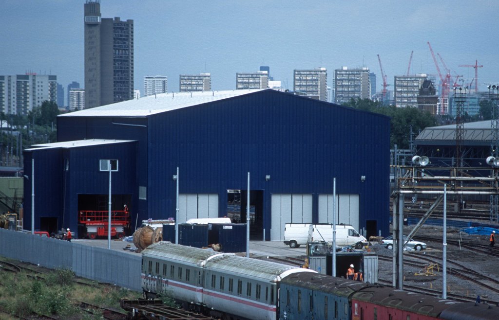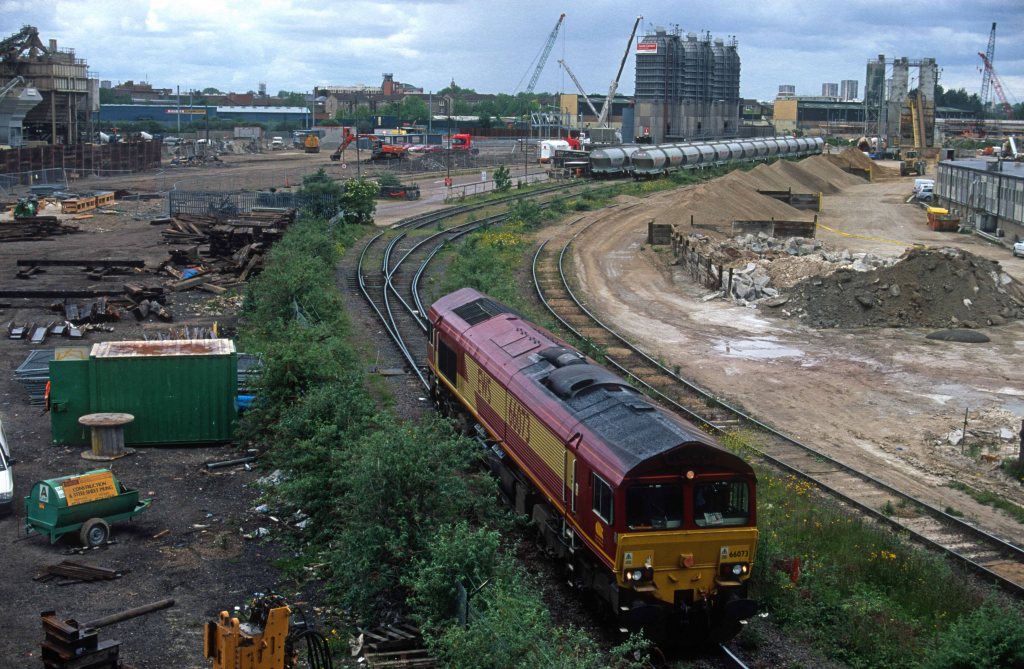 On the 29th May 2002 66073 backs into Kings Cross Goods Yard to pick up empty cement tanks to take them back to Ketton. The whole area was being redeveloped as part of High Speed 1 and there’s virtually nothing in this picture that still exists – including the location I took the photograph from! This is now a residential and commercial area full of high-rises. The cement terminal was relocated on the approaches to St Pancras.On the same day a pair of North of London Eurostars stand at Kings Cross whilst on hire to GNER for the ‘White Rose’ services between London and York. Here’s another scene that’s vanished and been completely transformed. On the 10th June 2002 a Silverlink Class 313 leaves Stratford Low Level in East London whilst working a service from Richmond to North Woolwich. This section of line closed on the 4th December 2006 and part of it was converted into the Docklands Light Railway.The Trellick Tower in the background gives this location away as Old Oak Common in West London. on the 15th June 2002 the buildings which were going to be the maintenance base for Great Western’s new Class 180 ‘Adelante’ fleet was still under construction. Now all this has disappeared under stabling sidings for the Crossrail fleet. How quickly times change.