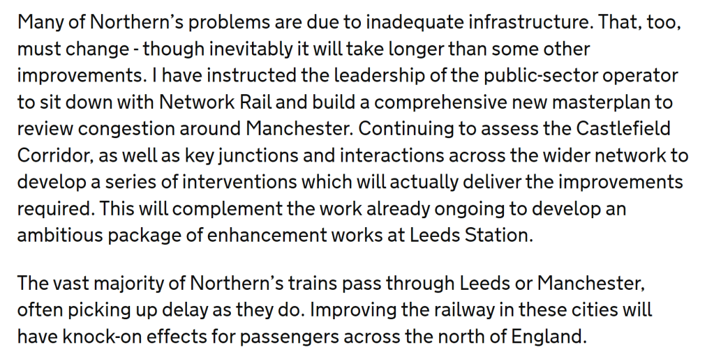 “The vast majority of Northern’s trains pass though Leeds or Manchester”? The two Northern cities that HS2 does so much to relieve rail capacity in! I’ve no doubt Northern leaders will be pointing this out to Shapps. With such an admission, does anyone seriously think the Minister is about to announce the cancellation of HS2 when doing so will just add to the problems?