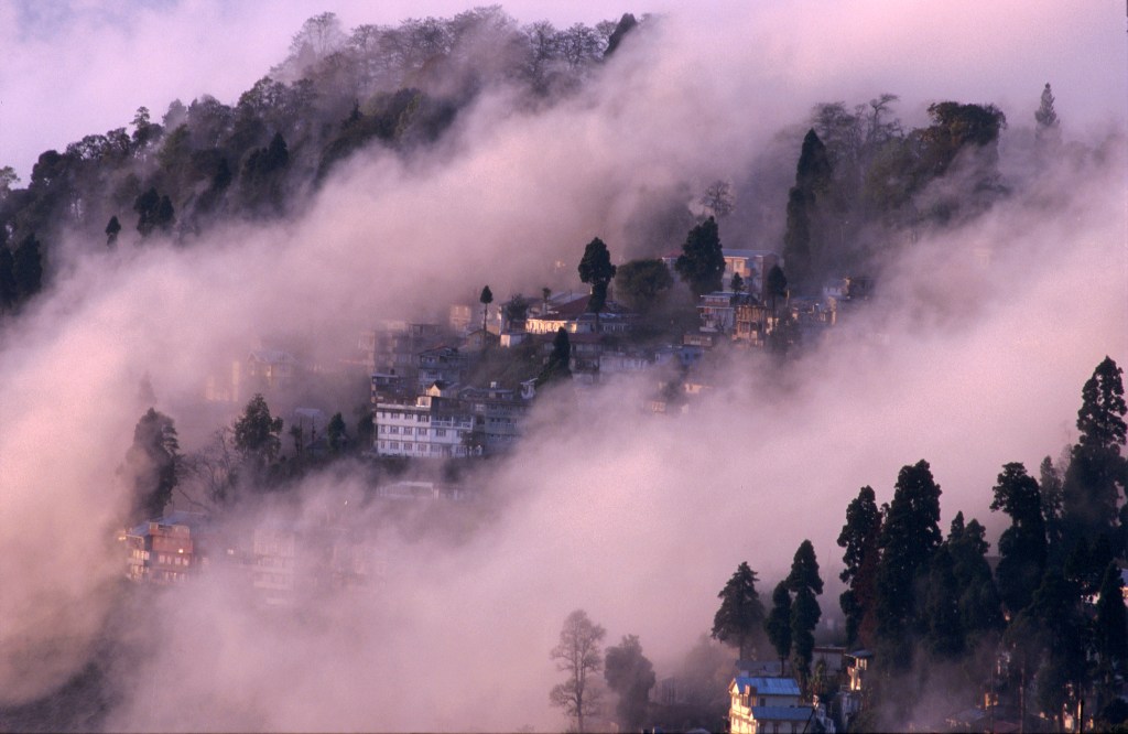 Today’s world photo day and my contribution and today’s picture of the day was taken in Darjeeling, India in April 1998. It was the view from our bedroom window and one morning, when I opened the curtains, it looked like this. The clouds boiled up from the valley below to envelope parts of the town.