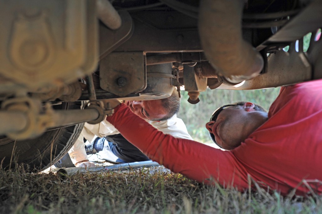 This brings me on to the picture of the day, which comes from my travel archive. This was one of a few times where the Gods smiled upon me. Lynn, Alison and I were travelling South down highway 13 in Laos by bus. Well, there’s little option. There’s no railways, so you either walk, fly, or go buy bus. Everything was going fine until the bus suddenly took on a life of its own and drifted to the left – into oncoming traffic – despite the best efforts of the driver. Thankfully, there was nothing coming the other way (which was a minor miracle in itself). Our Driver controlled the bus via the brakes and brought us to a stand still upright – on the opposite side of the road, just before we’d have gone down an embankment. When we all piled out and started to work out what the hell had happened the driver and a couple of vehicle savvy Westerners had a look underneath the vehicle. It transpired that the steering linkage was missing a bolt (or two) so the steering wheel had become an ornament! It didn’t matter which way our driver turned it – that bus was going its own sweet way! Here’s the picture I took at the time. It’s dated the 13th January 2009.