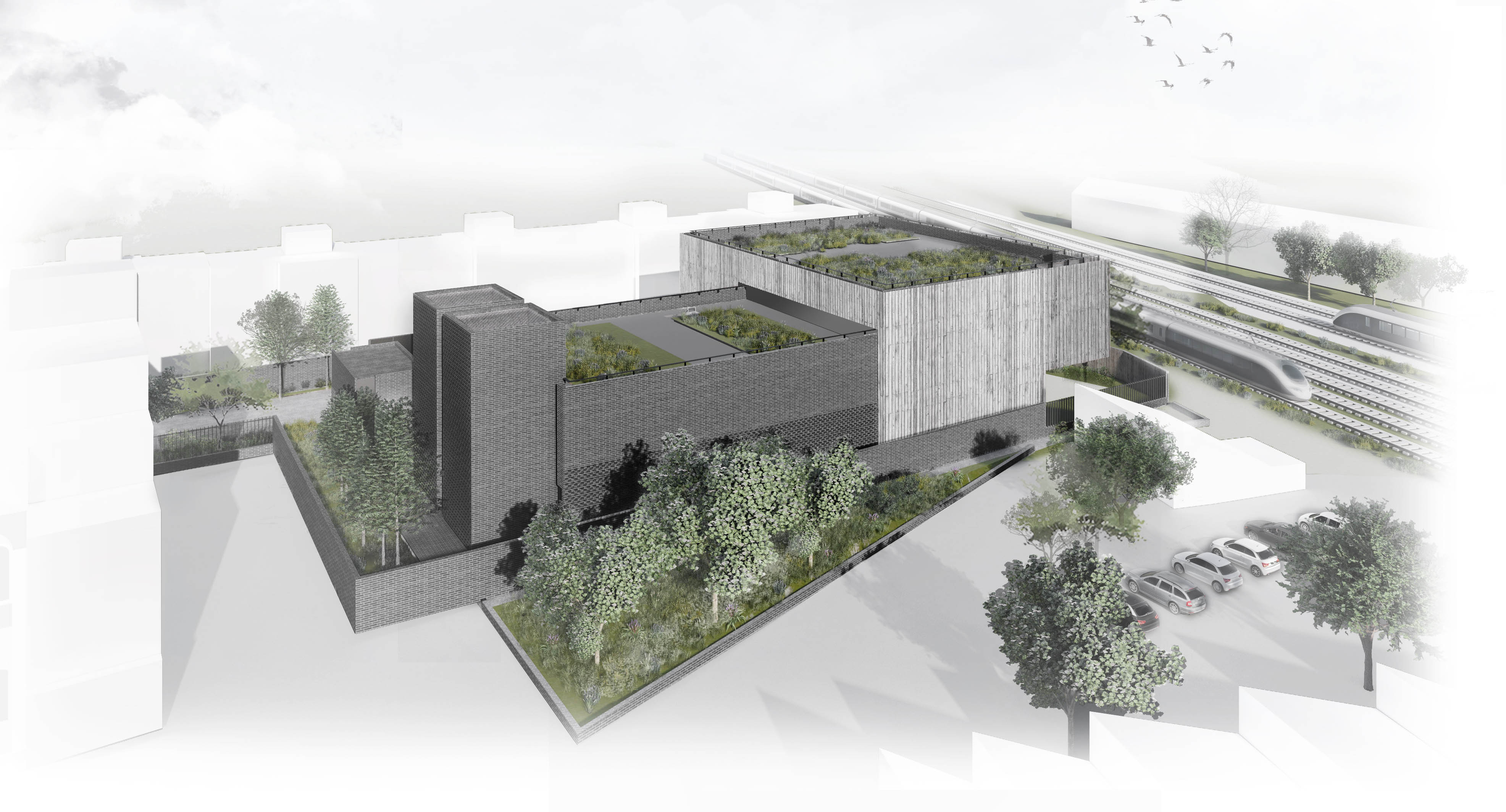 Design for the Canterbury Works headhouse and compound. The Canterbury Works site is located in South Kilburn, behind Canterbury Road and Canterbury Terrace and next to the existing railway tracks. Picture Copyright HS2 Ltd.