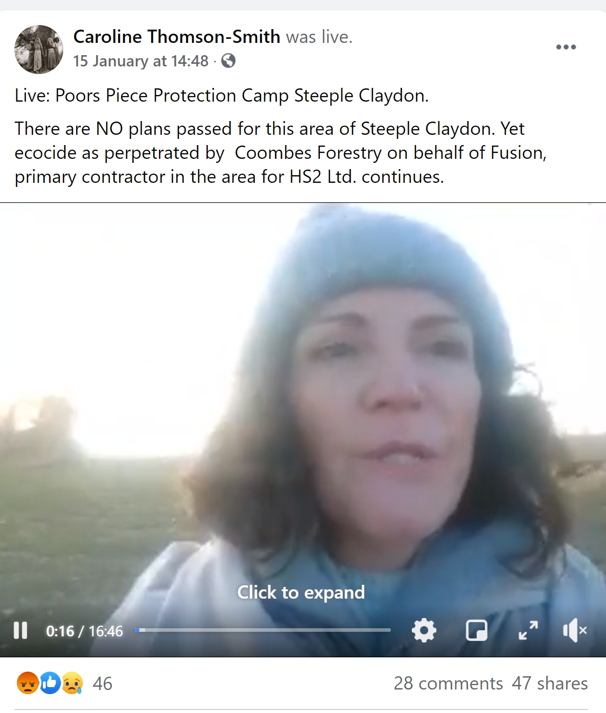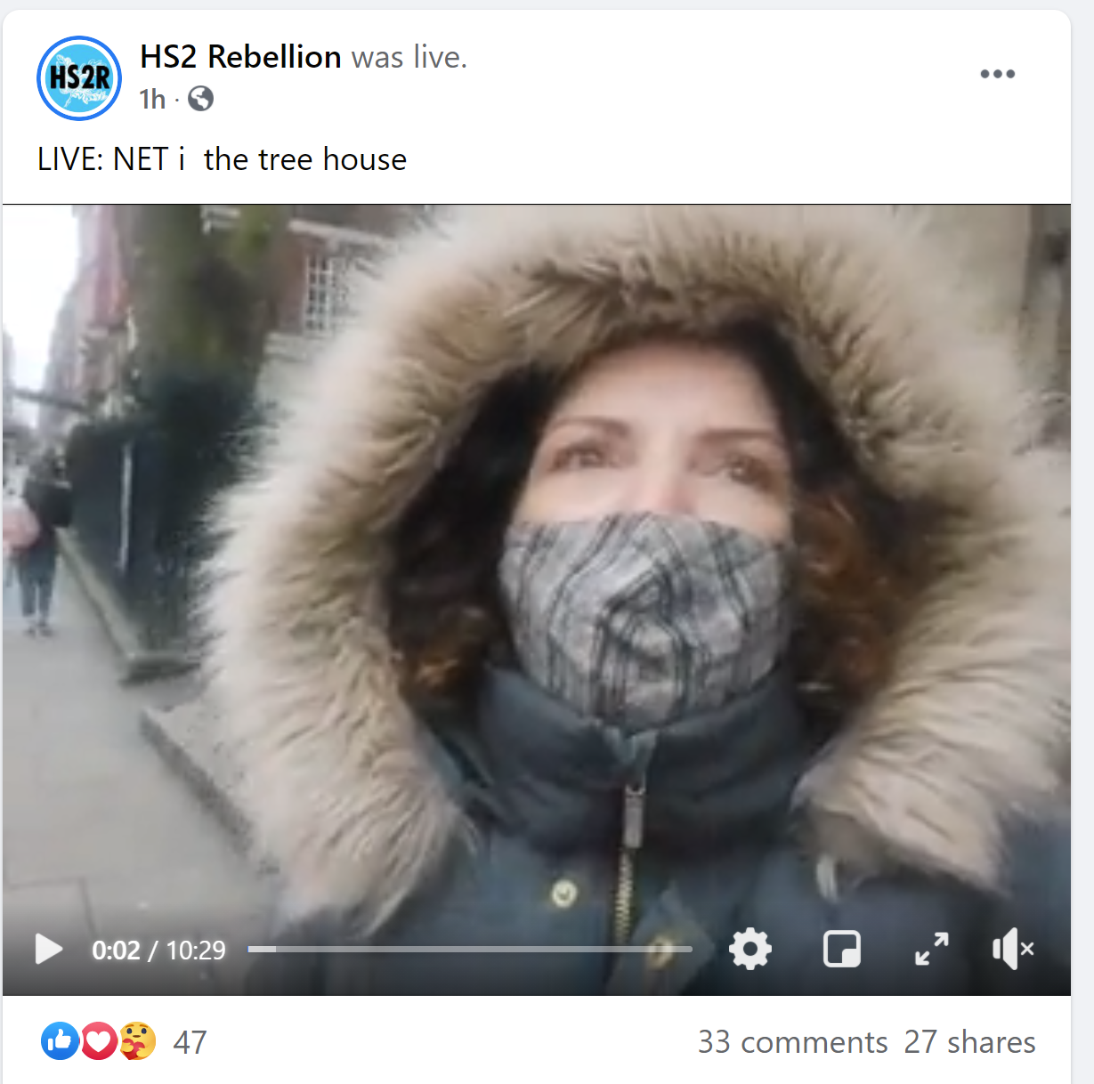 Here’s Caroline yesterday, livestreaming from Euston to the HS2rebellion Facebook page. Steeple Claydon is 59 miles away from Euston. Now, what was that Government advice again?