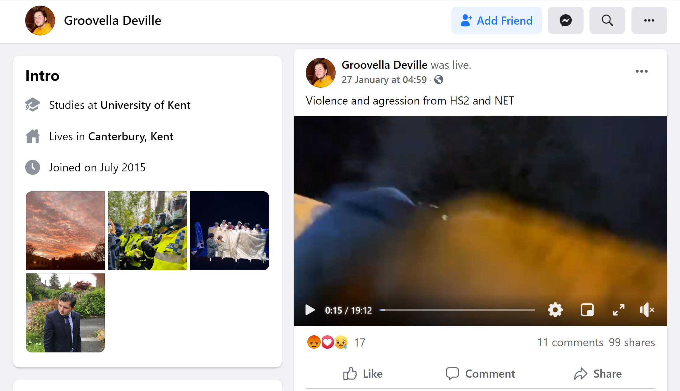 Whilst William had to be content circulating his rubbish whilst sunning himself in Spain, other protesters had turned up. Meet Jacob Harwood, a long time protester who’s popped up all over the place since 2019. Supposedly, he’s meant to be in Canterbury where he’s a student.