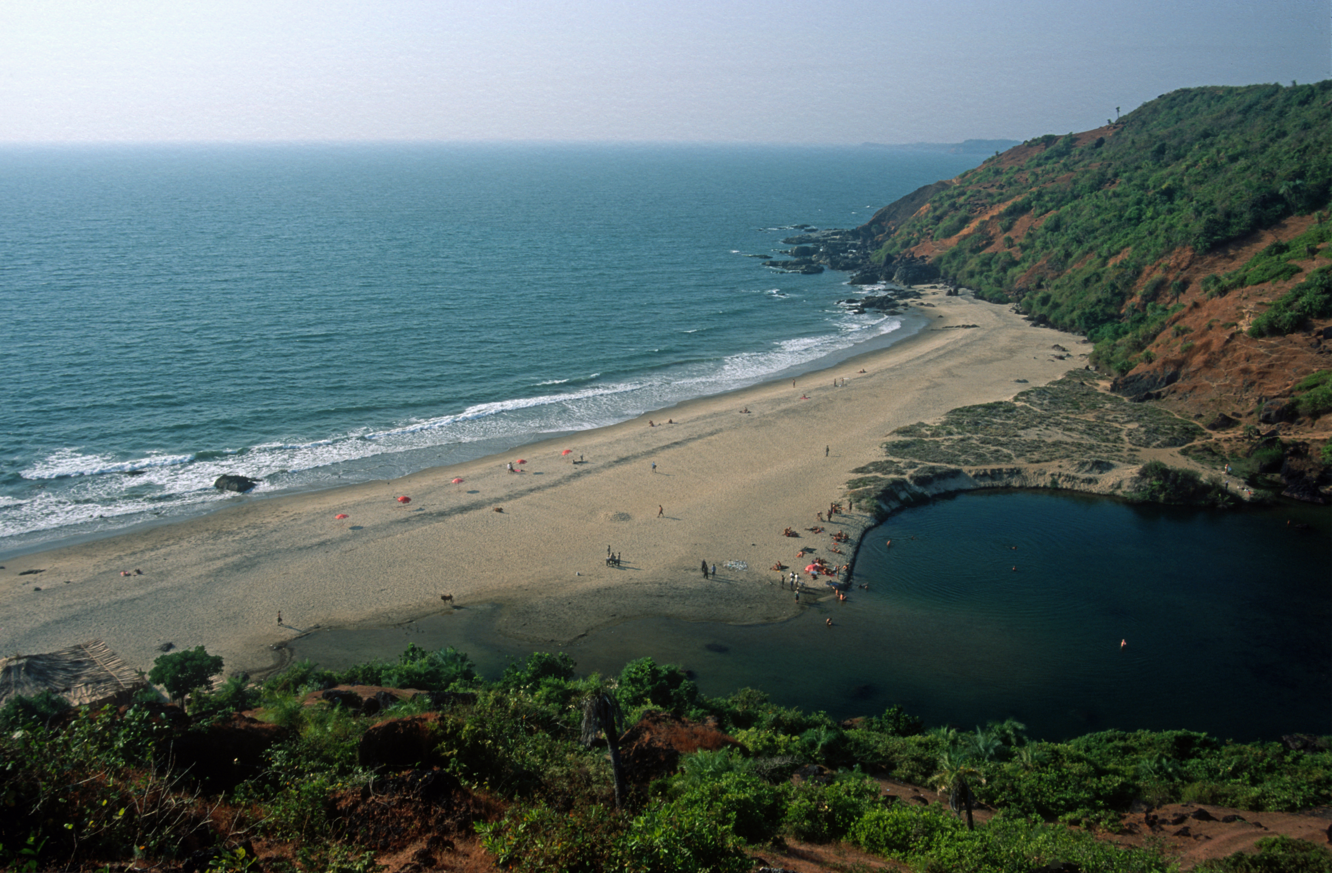 I took this shot of the little beach and freshwater lake in Arambol, North Goa on the 31st January 2000.