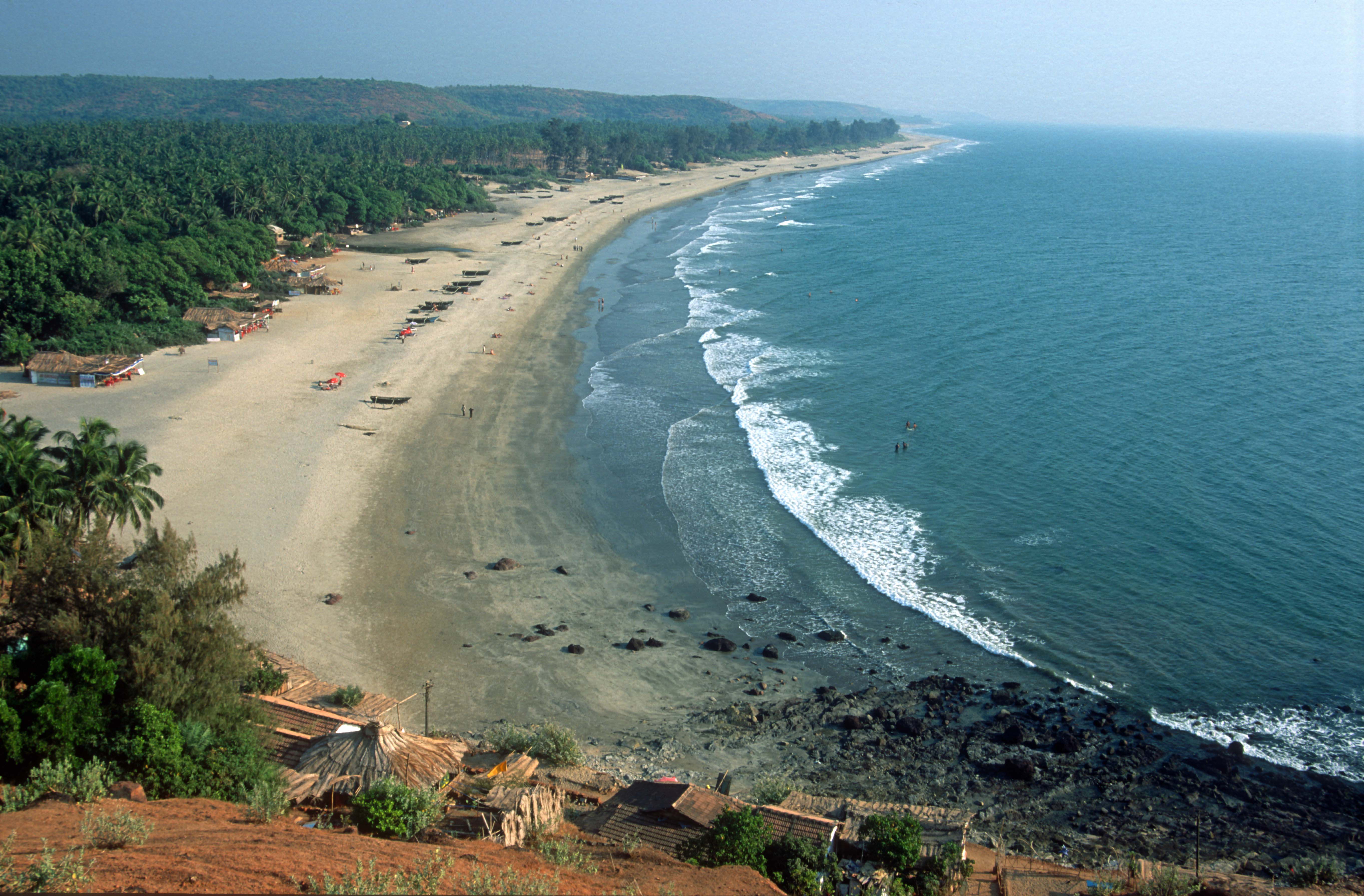 What I have managed to do this evening is get a few slides scanned, which has provided the picture of the day. Yesterday’s was a view of the ‘little beach’ in Goa, India. Here’s looking the other way…