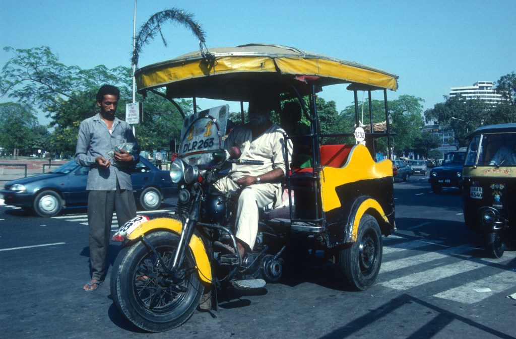 I took this image of a Harley-Davidson trishaw taxi in Connaught Place, New Delhi, India on the 24th October 1991.