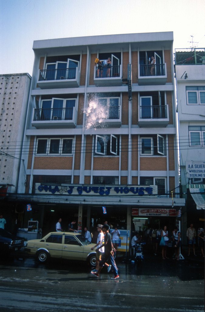 Here’s one from the latest batch of scans from my 1991-92 trip to Australia via SE Asia. I took this in the Khao San Rd in Bangkok, Thailand on the 12th April 1992 which was during the Thai festival of Songkran (Thai New Year) which is also a water festival.