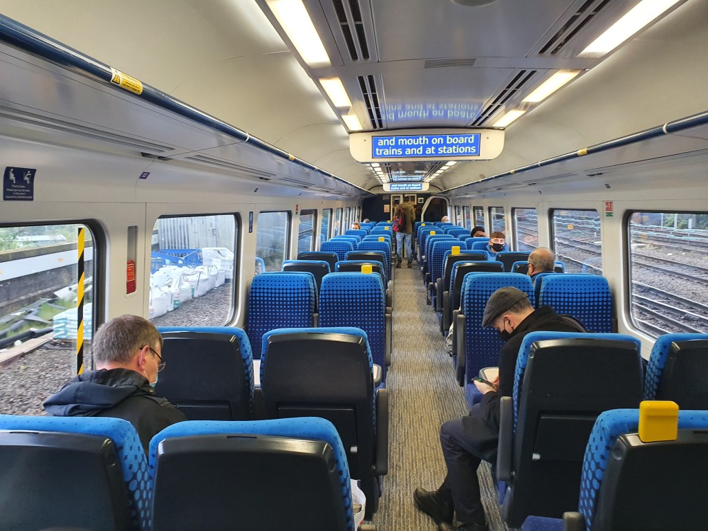 I’m currently on Northern’s 06:07 service from Sowerby Bridge as far as Manchester Victoria. Before the pandemic this would probably have been worked by one of the elderly 2-car ‘Pacer’ trains. Now they’re all retired we’ve been graced with a pair of 2-car Class 158s, which is clearly an improvement. At this God-forsaken hour of the day I’d hardly expect to it be crowded at the best of times, but these are hardly the best of times. We’re slowly picking up passengers as we go but right now (having just left Smithy Bridge) there’s only seven of us in the front vehicle. Still, that’s an improvement on this time last year when you’d have been lucky to have that many on the entire train!