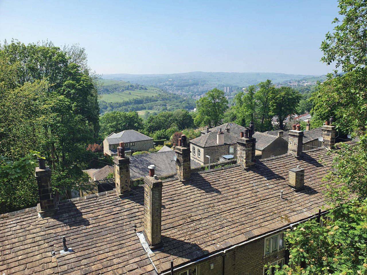 That said, we’re having a day out tomorrow as we’re heading to somewhere I’ve never visited before. At Dawn’s suggestion we’re off to Flamborough Head near Bridlington, which sounds ideal, a rugged stetch of coastline with a lot of history, walking trails and wildlife. No doubt I’ll be blogging about it at some point but there’s going to be a a few more rolling blogs in the pipeline as from next Monday I’ll be spending several days based in Ipswich and travelling the East Anglian rail network for work. We’re having an early start in the morning so I’m cutting this blog short and leaving you with the picture of the day which I took this afternoon from our garden terrace looking over the cottages down towards Sowerby Bridge in the valley below. See what I mean about the sunshine?