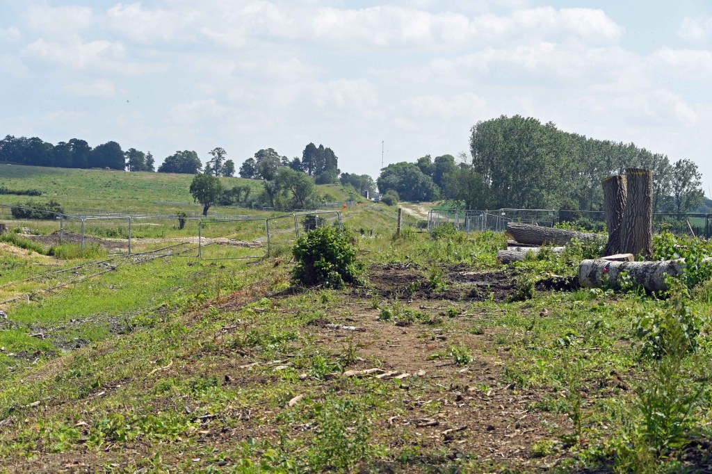 “At one” with their environment? I think not! This pile of junk choking a tree is actually a tower and tree house on the edge of the woods facing the East-West railway line. I’d love to know what their Environmental Impact Assessment was for these structures. How many wasted hours were spent building these things? How were these meant to ‘stophs2’ when the nearest they are to Hs2 is 400 metres from the most Eastern edge of what will be the Calvert Infrastructure Maintenenace Depot (IMD) and over 1.5km from the main HS2 works site and trace? Did they stop part of the camp that was blocking work on the E-W railway from being evicted? Did they heck as like! Here’s some perspective. Looking along the edge of the site from the footpath.