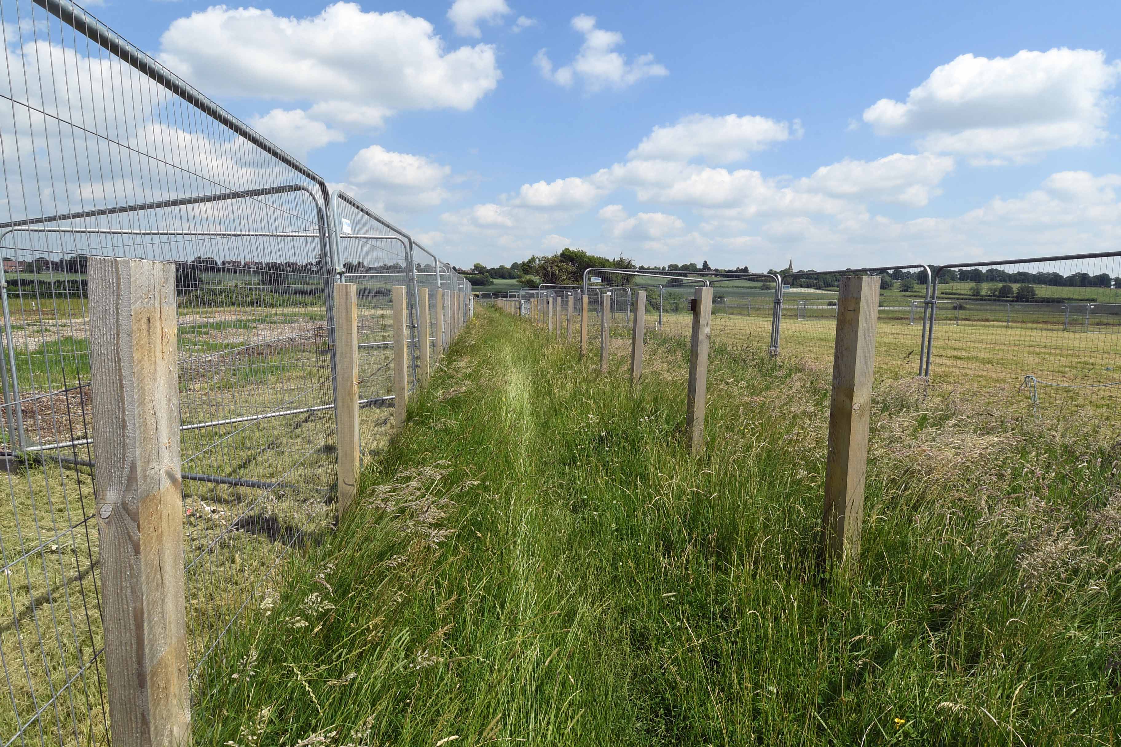 Some of that timber looks like it’s been taken from vandalised fencing along the public footpath adjacent to the site, as you can see in this picture. These posts should have a triple row of crosspieces between them that have mysteriously disappeared…