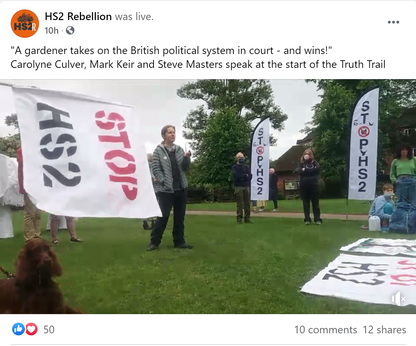 When I began writing this blog earlier today the ‘truth trail’ hadn’t even started. Now, at the end of day 1 it already seems to be going a bit ‘Pete Tong’ for @hs2rebellion. They kicked off in Lichfield with some motivational speech from err, Larch Maxey and Carolyne Culver. Who, you may ask? Larch Maxey is a long term protester in the pay of Extinction Rebellion who has a track record of failure going back to the mid-1990s when he didn’t stop a motorway extension in Lancashire. More recently, he was flummoxed by a pair of automatic doors he failed to glue himself to. Even more recently he’s been a jailbird in Pentonville prison in London after vandalising the HQ of HS2Ltd at Euston. Only it wasn’t. Their HQ is in Birmingham and the offices Maxey vandalised were those of Network Rail (HS2 have a small satellite office in a nearby building).
