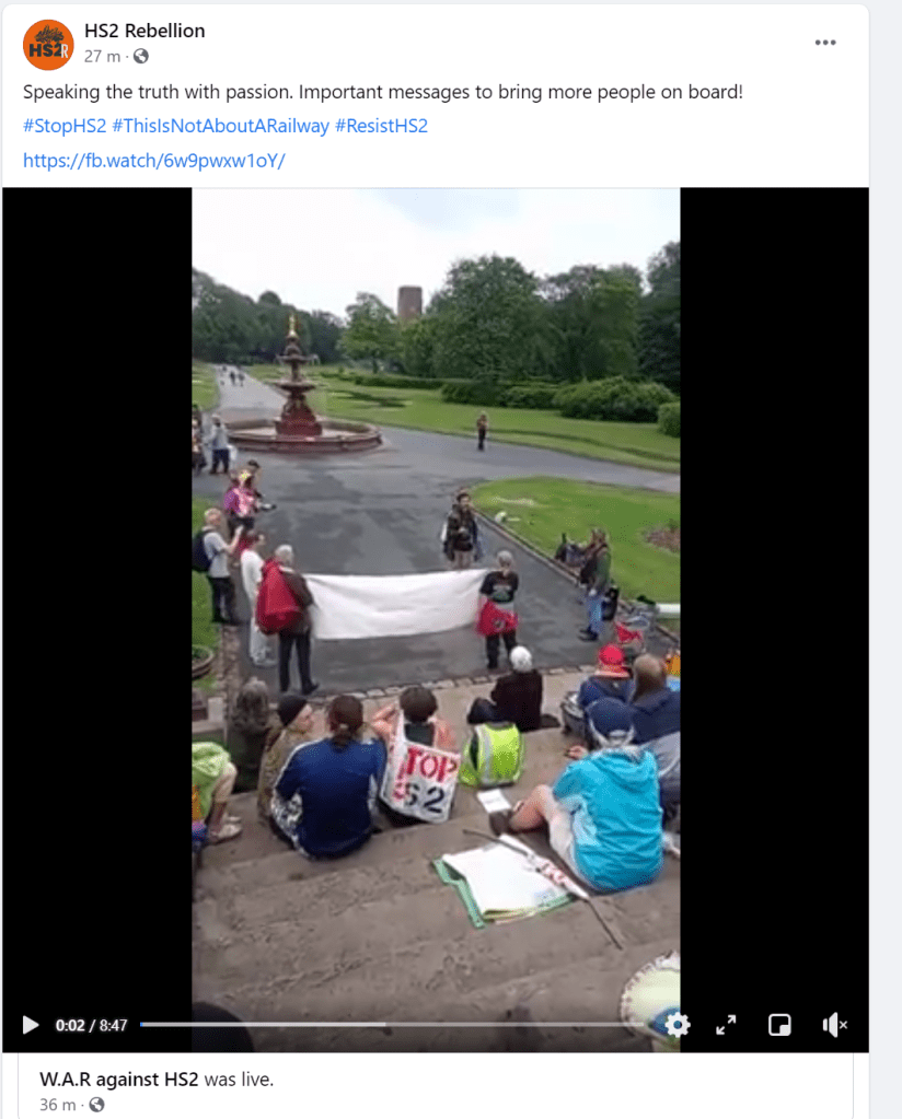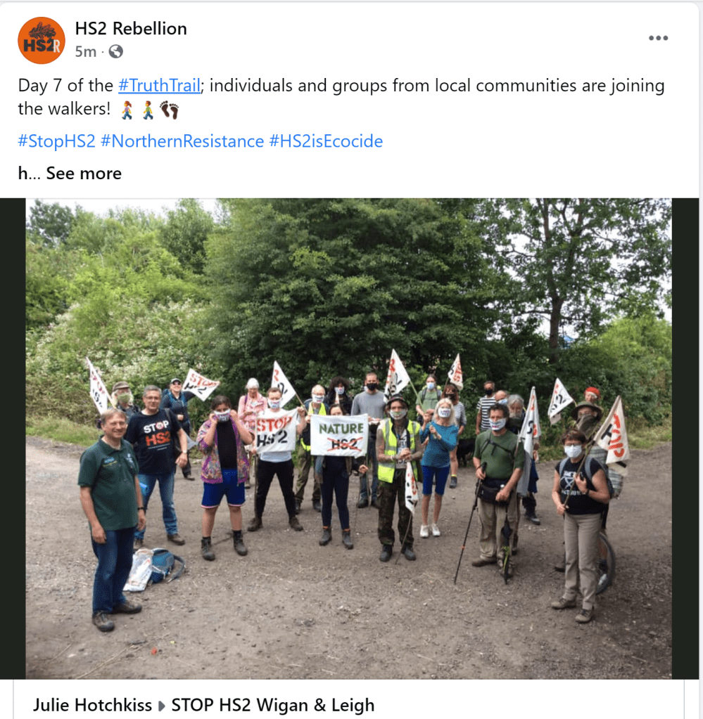 After 8 days of walking from Lichfield to Wigan @hs2rebellion’s ‘Truth Trail’ ended like a damp squib in Wigan this afternoon – as it was always going to. Despite getting some support from local Extinction Rebellion groups it was painfully obvious this was a tiny band of people talking to themselves. Most days the march only had a couple of dozen people on it – and the vast majority of them were the usual suspects.