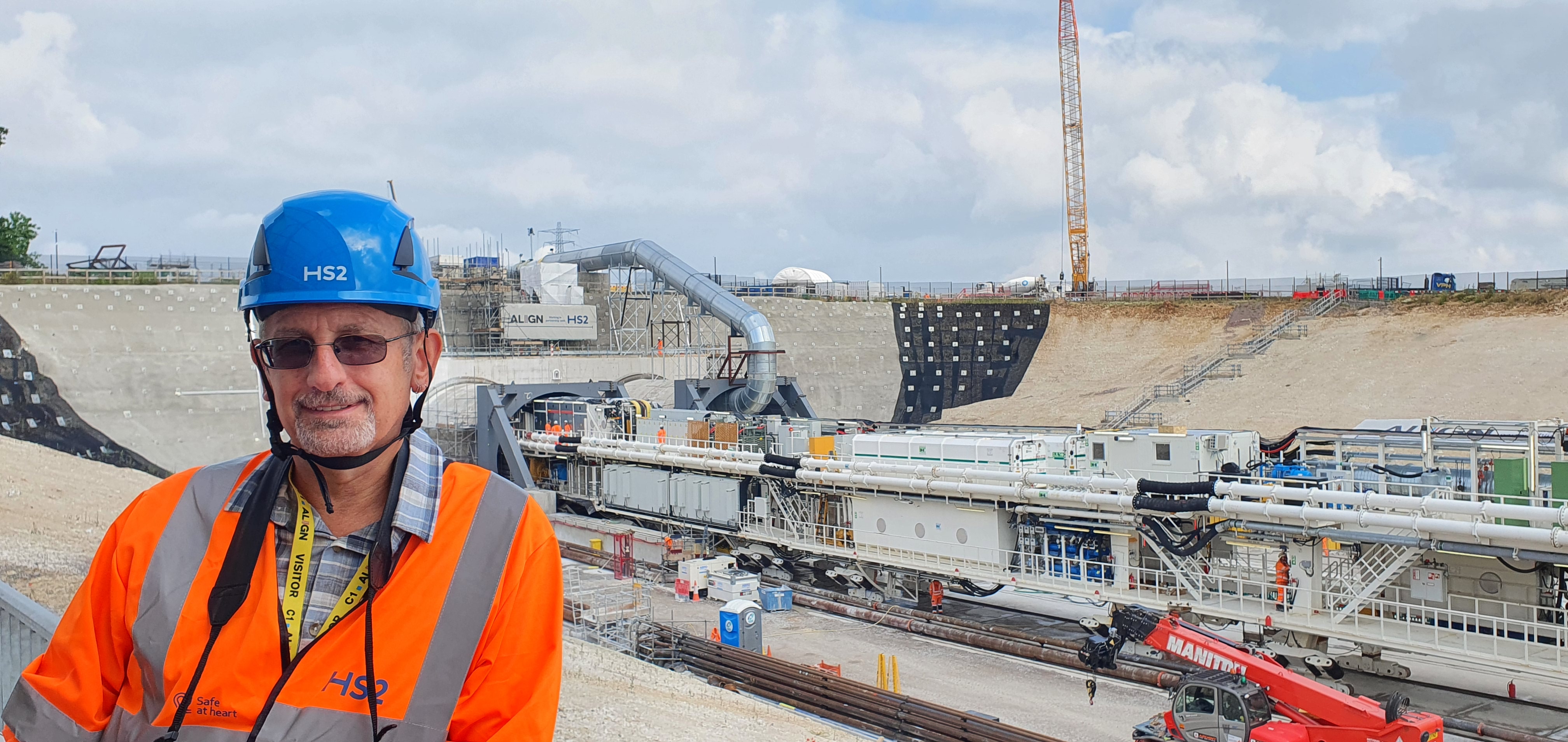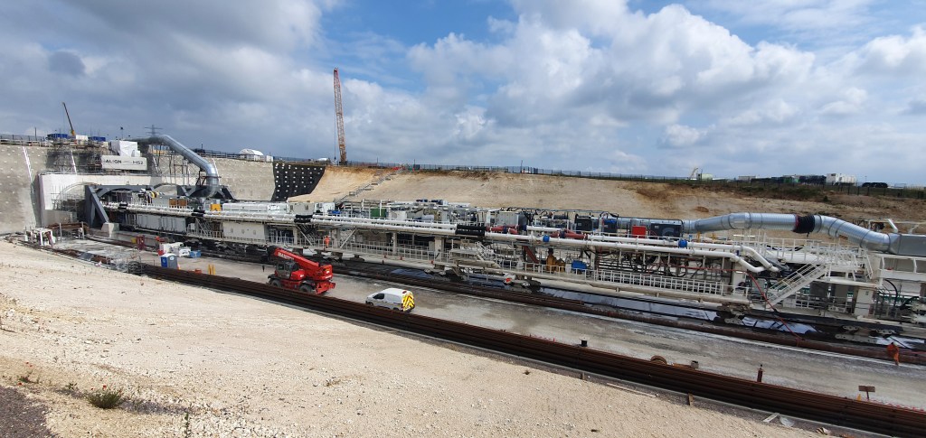 The gloomy weather cleared by the time I got to my final destination, which was the amazing HS2 construction site at South Heath, on the edge of the M25. It’s from here that two of the biggest structures on phase 1 of HS2 are being built from. Right now there are two huge tunnel boring machines (TBMs) drilling a pair of 9.1m diameter bores Northwards. These dwarf the 7.6m bores of the channel tunnel. Meanwhile, preperations are underway to begin costruction of the 3.5km long Colne Valley viaduct which will be built Southwards from the same site. Our small group wrre given a guided tour that got us up close and personal with “Cecilia” the second of the 160 metre long TBMs which was launched last week (a week earlier than planned).