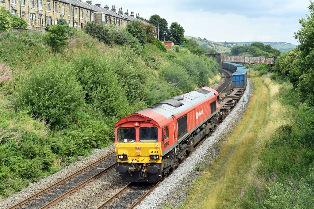 DB Cargo’s 66152 heads West with 6M16, the Monday’s only Tees Yard to Knowsley (Liverpool ) empty ‘binliner’. These waste trains were once a regular sight in the Colne Valley but changes in the locations served and the fact this trans-Pennine route no longer has the capacity to cope means the trains now normally run via the Calder Valley.