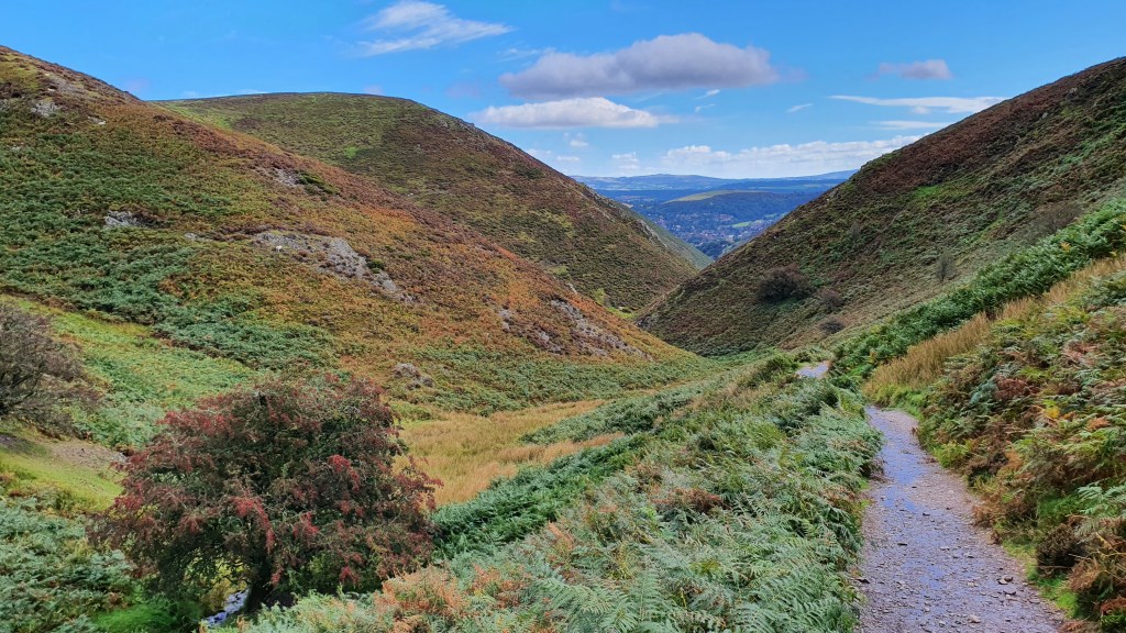 Today the pair of us passed the day walking on the Long Mynd above the little town of Church Stretton in Shropshire. The Mynd’s a heath and moorland plateau that’s been designated and Area of Outstanding Natural Beauty (AONB). It’s reached by a series of steep climbs from the town – which it towers over. Unlike when we climbed nearby Caer Caradoc we were lucky with the weather, as these pictures show. I’ll describe the area in more detail soon…