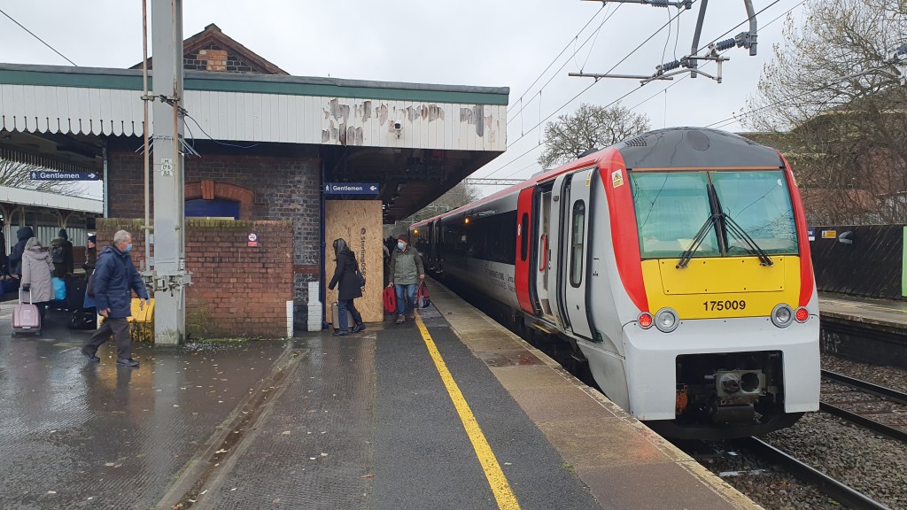 I changed trains in Crewe as I was hoping to catch some of the new Welsh or West Midlands trains out on test but today wasn’t my lucky day as nothing was running. The weather was grim and I’d had a message from an Irish friend that he was in Manchester this afternoon so I didn’t hang around. As ‘luck’ would have it a Transport for Wales service to Manchester was running 35 mins late due to the weather and stuff being blown onto the line, so I caught that the 2-car 175 when it turned up.