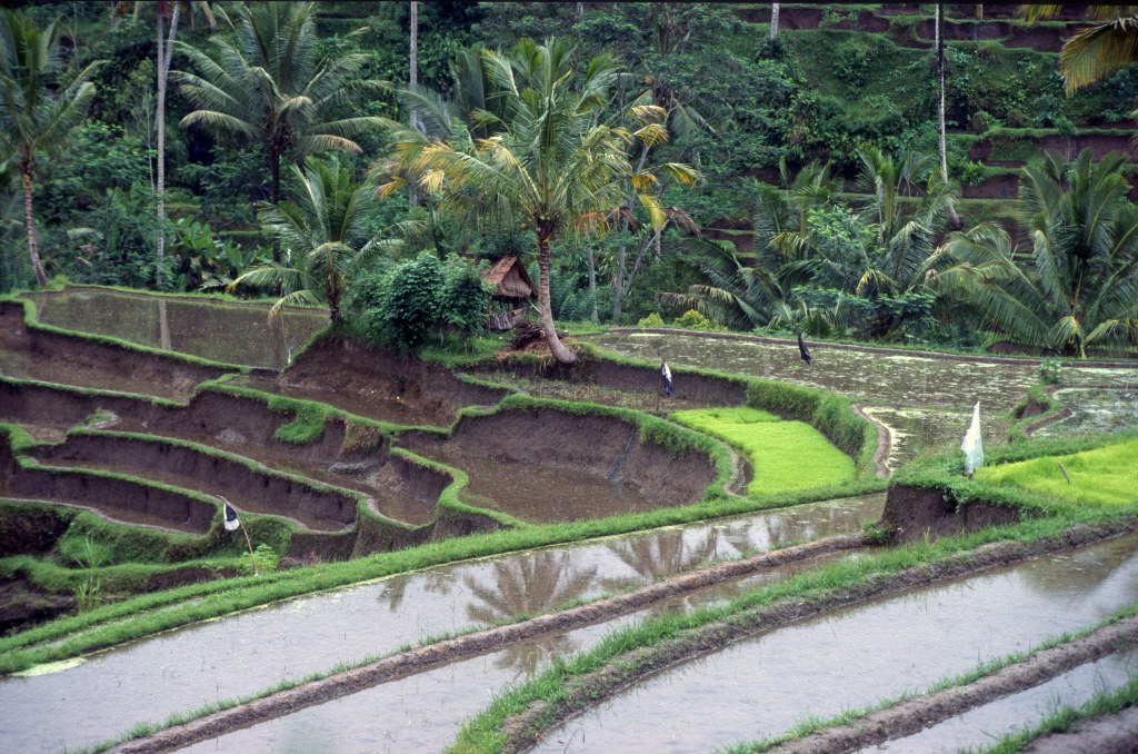 To pass the time I’ve been scanning and storing lots of old travel slides. They won’t see the light of day just yet as they’re in reserve to give me something to do over Christmas during those quiet ‘down time’ moments when everyone’s stuffed to the gills with Xmas fayre and falling asleep in front of the TV. But here’s a snippet. I’ve finished scanning the Bali pictures from 1994-95 and moved on to UK images from the latter year. So here’s one of the last Bali pictures. I’ve always loved the sculptured landscape of Bali and the way farmers have managed to carve out paddy fields from the most extreme of slopes. Here’s an example.