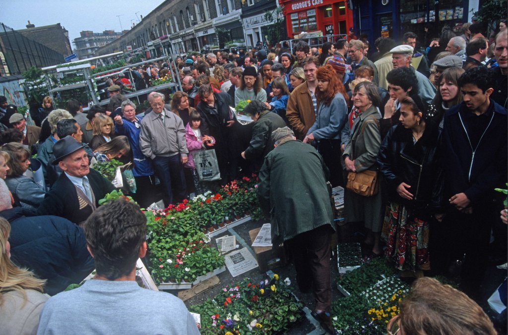 With such thoughts I’ll leave you with the picture of the day, which is very different to Yorkshire. I took this shot at the Columbia Rd flower market in the spring of 1996. I was still living in London’s East End at the time and this was the market where we all went to buy our plants, carrying them back home by tube or on bikes. In those days it was still a fascinating mix of the traditional and bohemian – as this picture shows. The chap in the hat was a classic old stallholder, barking out the prices to people in a way that hadn’t changed in years.