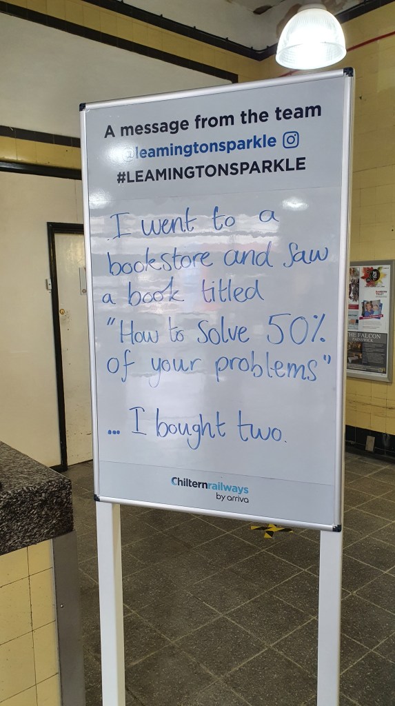 Whilst I wait for my contact and local guide to arrive I’ve some time to spend getting pictures at the delightful old GWR built station at Leamington where the staff obviously both enjoy their jobs – and have a sense of humour!