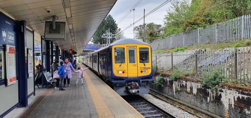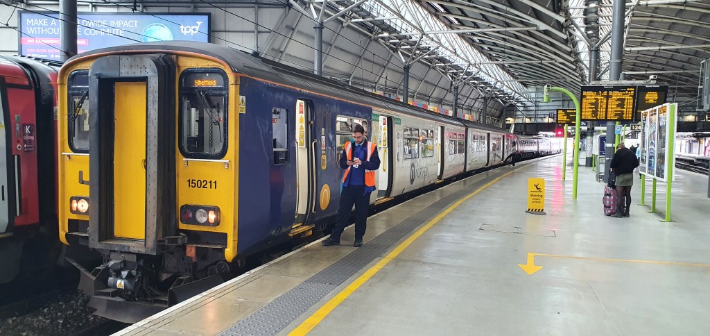 Right now I’m heading into Leeds having missed my Bradford option by the skin of my teeth. This train’s quiet as it’s operating contraflow so it’s only carrying early revellers who’re heading for a night out in Leeds.