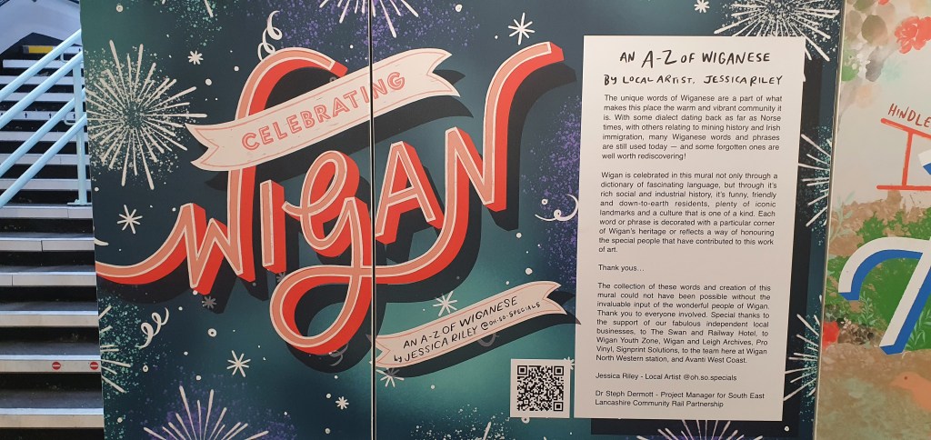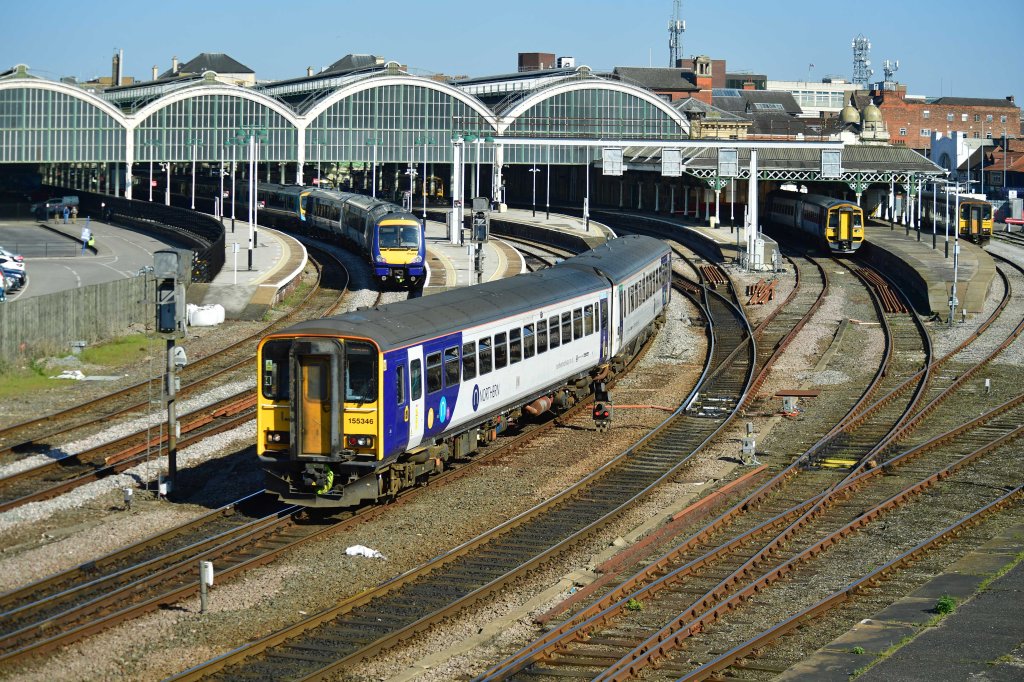 A short walk under the attractively lit and decorated subway brought me up to the Westbound platform where I found the 11:11 is running 3 mins late. Not untypical but not a problem as I’ve no other connection to make. This used to be a good place for photography but the growth of lineside vegetation had reduced visibility so much that any shot of a train heading East would look like it’s running through a field! All this will change soon when the Trans-Pennine route upgrade (TRU) begins. This section will be restored to four tracks, the station rebuilt and the line electrified.