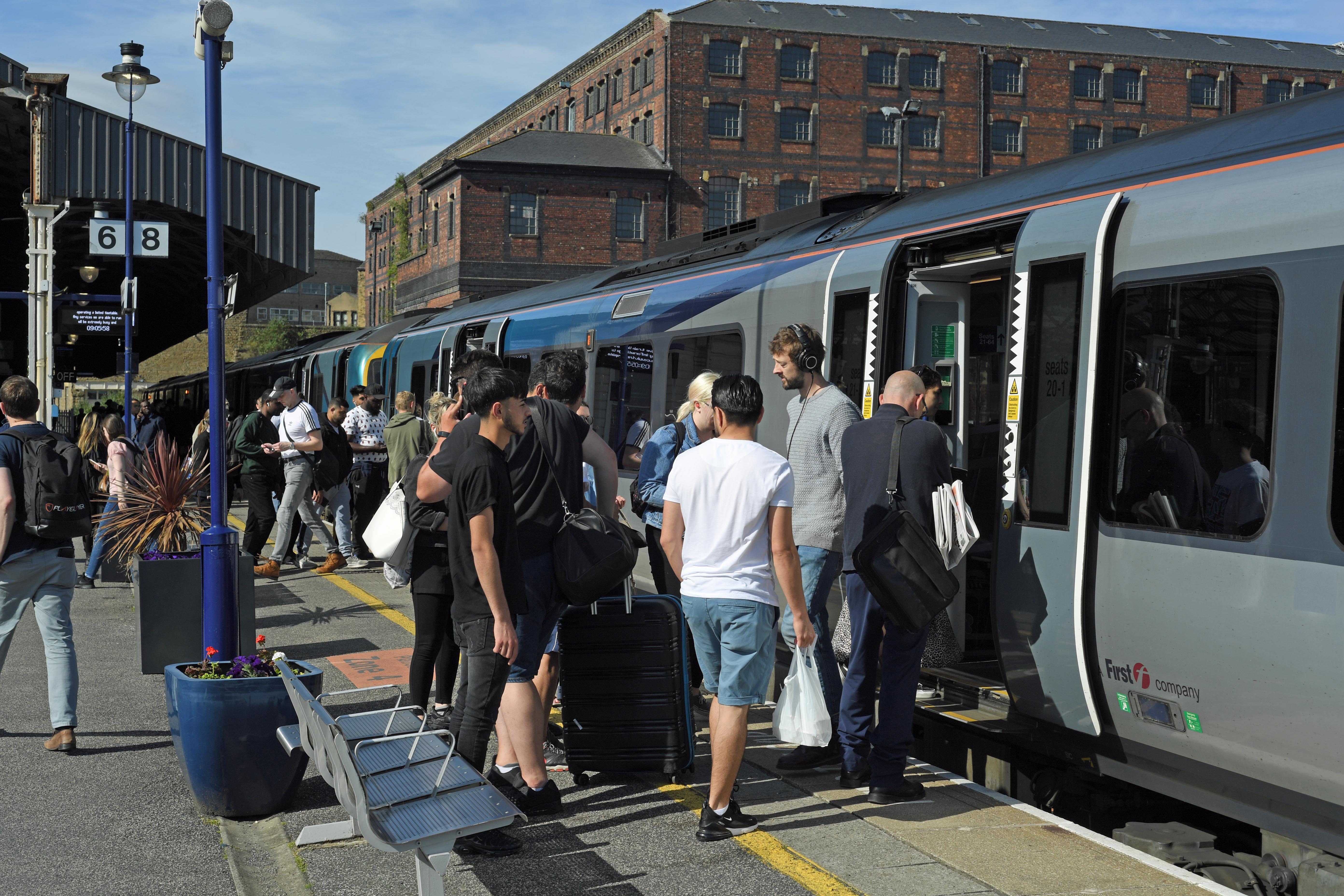 I’m at Huddersfield en-route to London on the first day of the biggest rail strike the country has seen for 30 years. This normally busy station’s pretty deserted. There’s two Trans-Pennine express trains an hour running. One to Manchester and one to York. The 09:07 all stations Eastbound service had lots of people waiting for at although when the 6 car train arrived it was pretty empty.