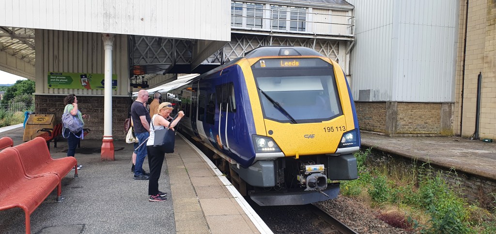 Right now I’m on the first leg of my journey aboard Northern’s 07:19 from Halifax to Leeds which is worked by a 3-car Class 195 – which is just as well as it’s a very busy train.